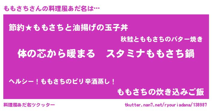 | ヘコむあだ名 | 『つくし』『ももふぇ~』『ももお』 |