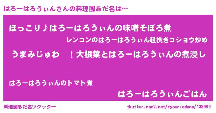| 2回繰り返すあだ名 | 『ははろろ』『はろはろ』『よぼよぼ』 |