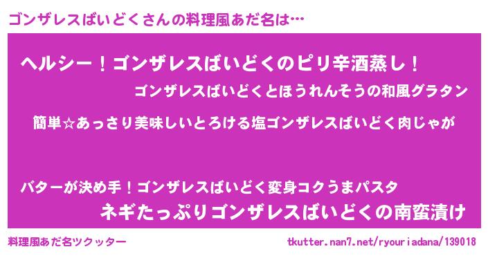 | 胡散臭い通販商品みたいなあだ名 | 『前代未聞の健康食品…その名も「ゴンザレスばいどく」』 |
