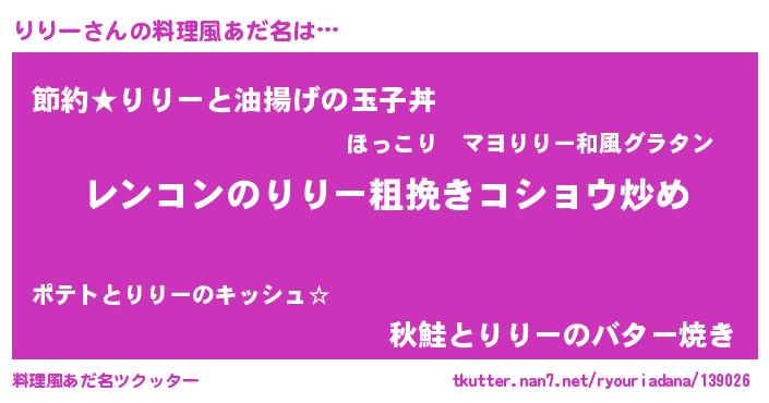 | 女子向けラノベタイトル風あだ名 | 『りりーなんてお断りですっ。』 |