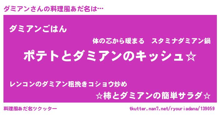 | ヒーロー風カッコイイあだ名 | 『魔戒騎士ダミ』『ウルトラダミアンマン』 |
