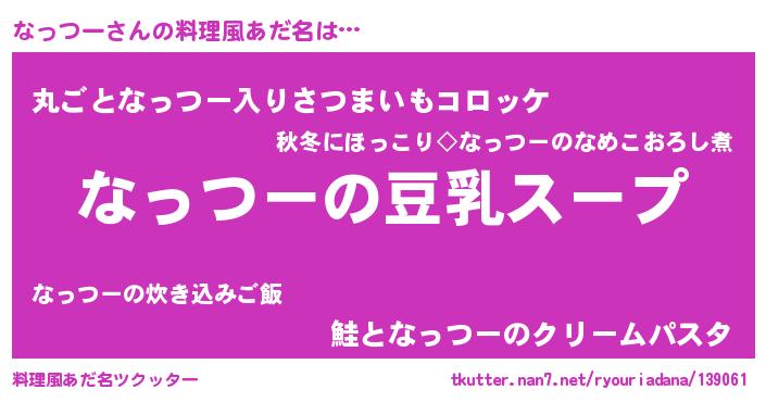 | ヘコむあだ名 | 『なっっぺ』『豆乳』『なっっふぃ~』 |