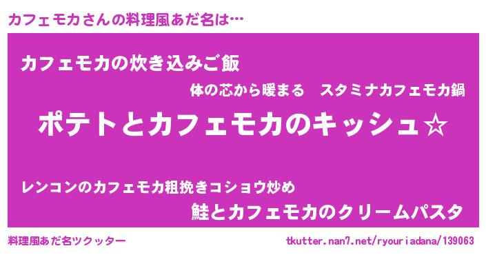 | ヒーロー風カッコイイあだ名 | 『魔戒騎士カフ』『天空の使者カフェモカ』 |