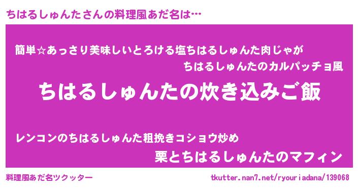 | ヘコむあだ名 | 『ちはるしゅんた(爆)』『酢こんぶ』 |