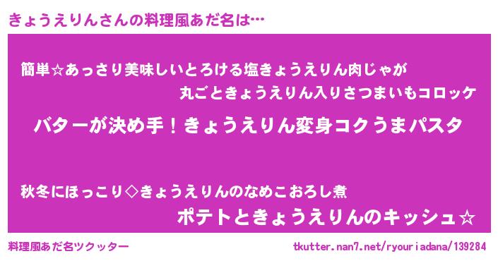 | ヘコむあだ名 | 『きょうえりん(笑)』『きょ太郎』 |