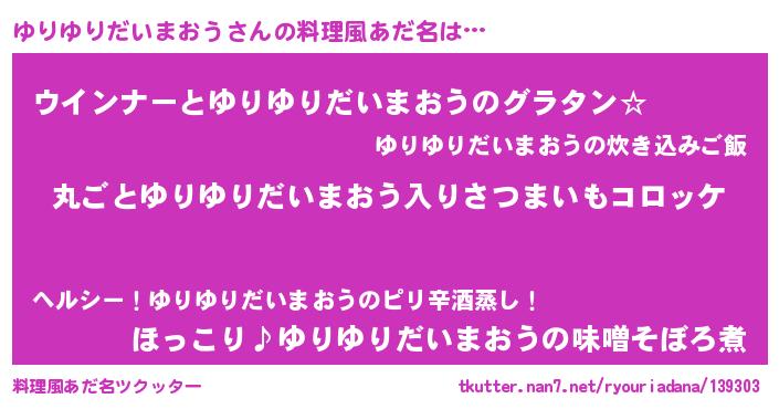 | 意味不明あだ名 | 『住所不定無職ゆりゆりだいまおう(68歳)』 |