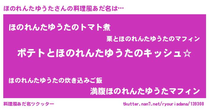 | 男性向けラノベタイトル風あだ名 | 『ほのれんたゆうたの嫁は女の子じゃないと思った?』 |