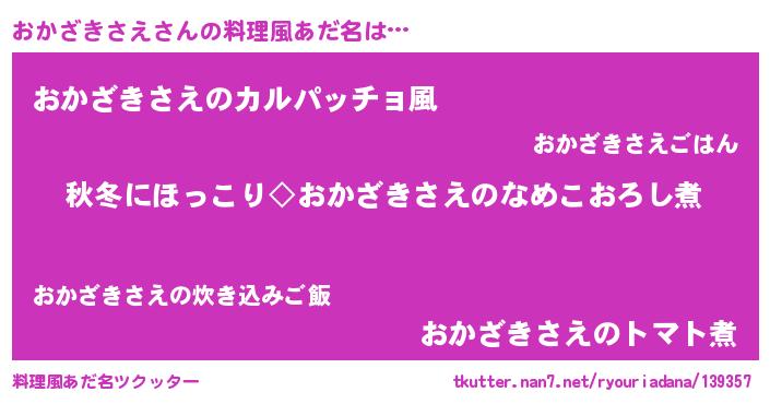 | 意味不明あだ名 | 『住所不定無職おかざきさえ(47歳)』 |