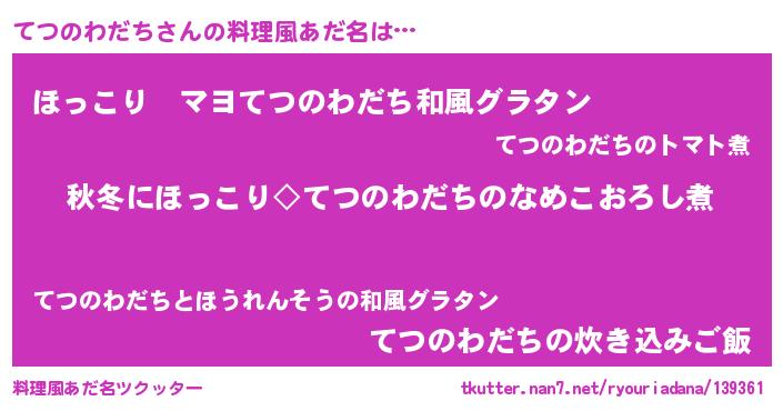 | ヘコむあだ名 | 『てつのわだち(笑)』『てつもー』 |