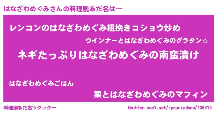| 2回繰り返すあだ名 | 『はなはな』『めらめら』『ははなな』 |
