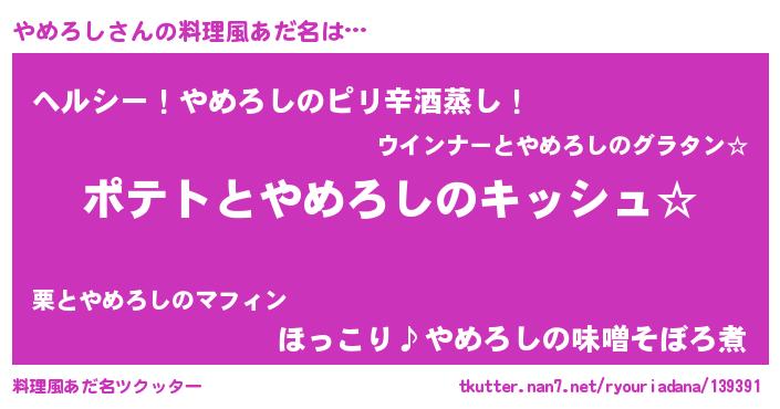 | 女子向けラノベタイトル風あだ名 | 『やめろしの卵を拾いまして』 |