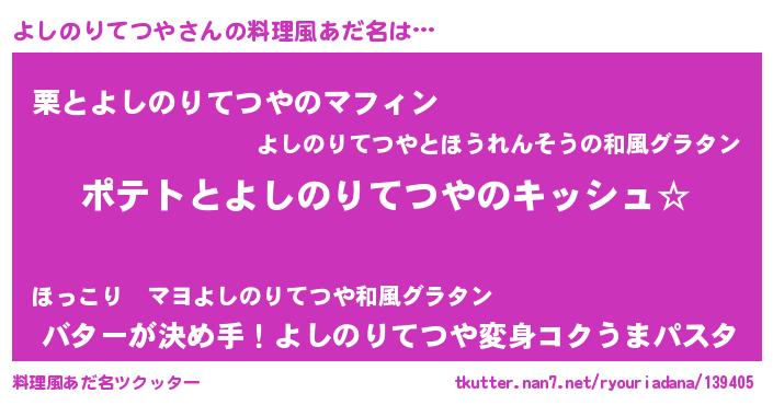 | ポケモン風あだ名 | 『ヒヨシノリテツヤ』『ヨシゴンZ』 |