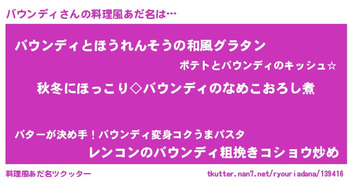 | 意味不明あだ名 | 『ニラ科バウンディ属』『自称バウンディ』 |