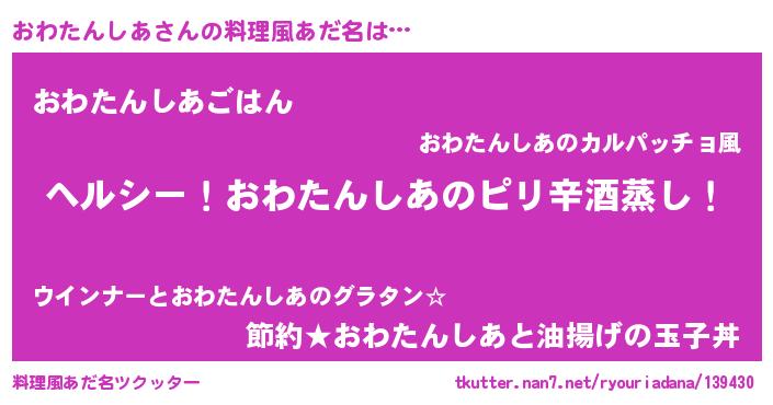 | 意味不明あだ名 | 『自称おわたんしあ』 |