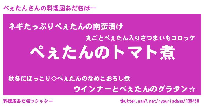| 胡散臭い通販商品みたいなあだ名 | 『100人中100人が認めたイリジウム磁石…その名も「ぺぇたん」』 |