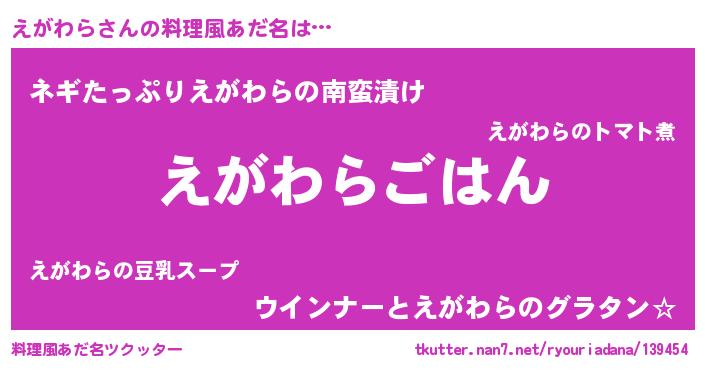 | ヘコむあだ名 | 『えがにゅー』『酢こんぶ』『えがを』 |