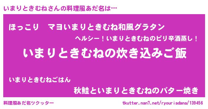 | 意味不明あだ名 | 『住所不定無職いまりときむね(86歳)』 |