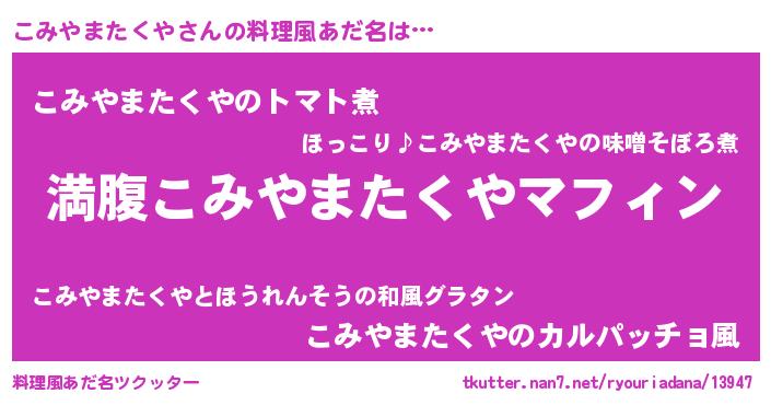 | ヘコむあだ名 | 『こみやまたくや(笑)』『こみっふぃ~』 |
