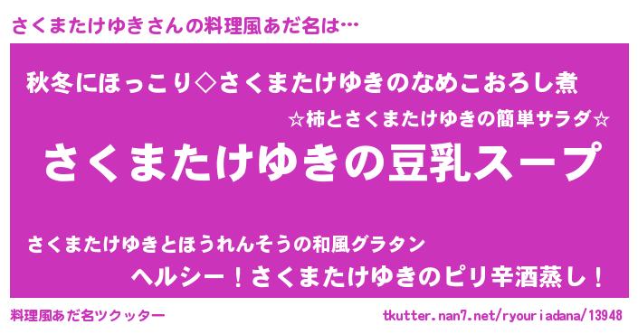 | ポケモン風あだ名 | 『ヒサクマタケユキ』『サクゴンZ』 |