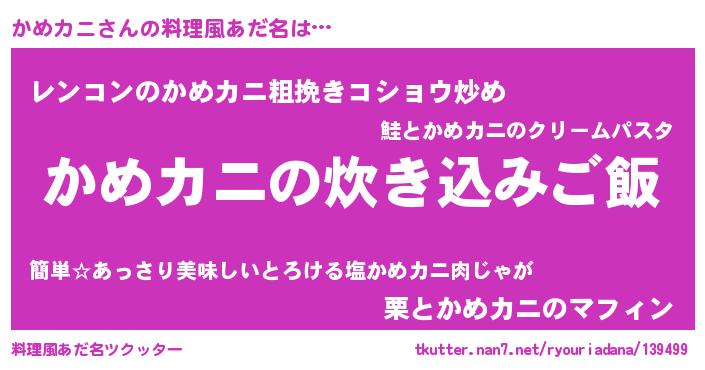 | 胡散臭い通販商品みたいなあだ名 | 『テレビで話題の高麗人参…その名も「かめカニ」』 |