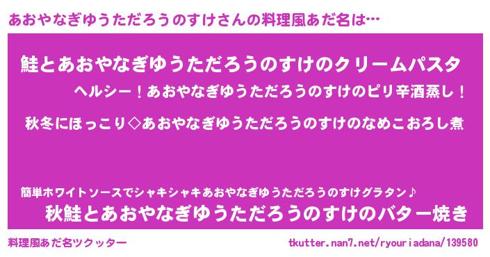 | ヘコむあだ名 | 『あおやなぎゆうただろうのすけ(爆)』 |