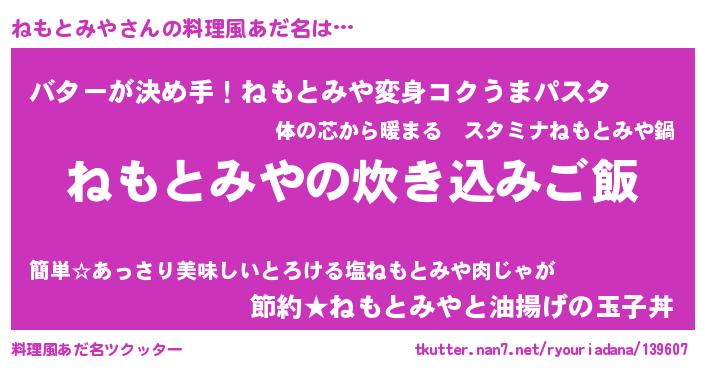 | ヒーロー風カッコイイあだ名 | 『慈愛の使者ねもとみや』『天弓騎士ネモ』 |
