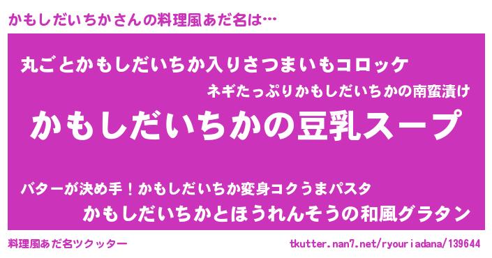 | 胡散臭い通販商品みたいなあだ名 | 『信頼と実績のネックレス…その名も「かもしだいちか」』 |