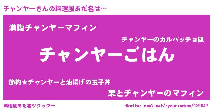 | ヘコむあだ名 | 『チャンヤー(震え声)』『チャっふぃ~』 |