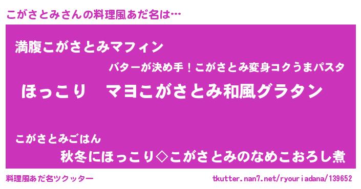 | 意味不明あだ名 | 『住所不定無職こがさとみ(13歳)』 |