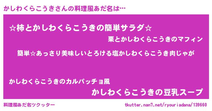 | ヘコむあだ名 | 『かしわくらこうき(笑)』『かしお』 |
