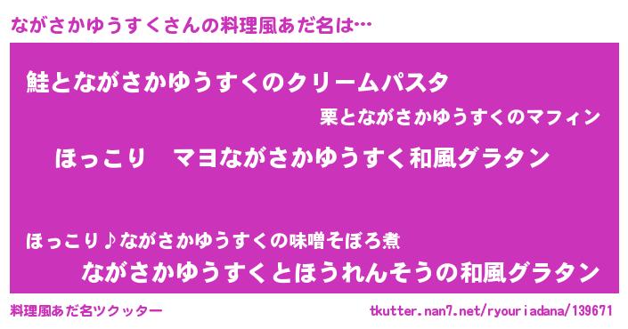 | 男性向けラノベタイトル風あだ名 | 『この素晴らしい世界にながさかゆうすくを!』 |