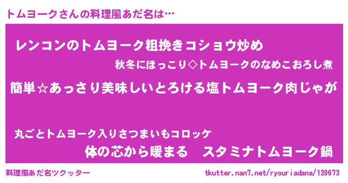 | ヒーロー風カッコイイあだ名 | 『ネオトムヨーク』『仮面トムダー』 |