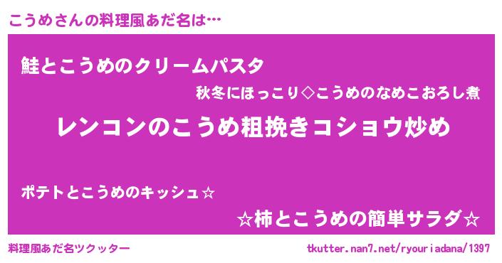 | 胡散臭い通販商品みたいなあだ名 | 『ガンによく効くアガリクス…その名も「こうめ」』 |