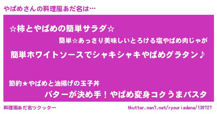 | 女子向けラノベタイトル風あだ名 | 『やばめ様がみてる』『やばめ恋絵巻』 |