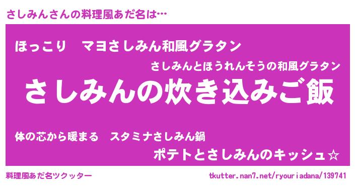 | 意味不明あだ名 | 『住所不定無職さしみん(4歳)』 |