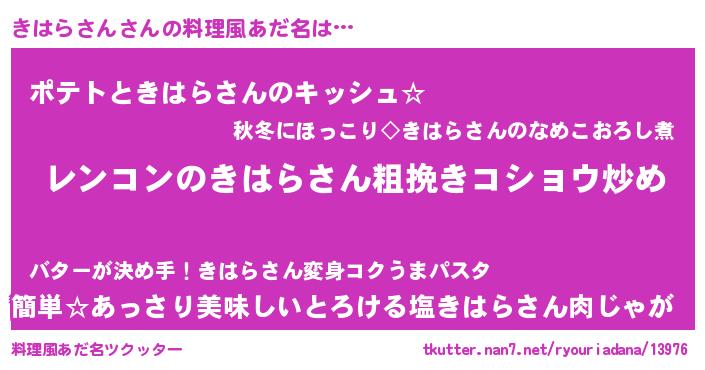 | 胡散臭い通販商品みたいなあだ名 | 『ガンによく効くアガリクス…その名も「きはらさん」』 |