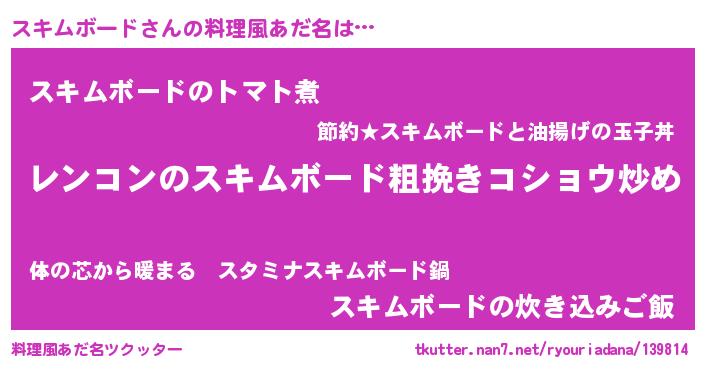 | 意味不明あだ名 | 『自称スキムボード』 |