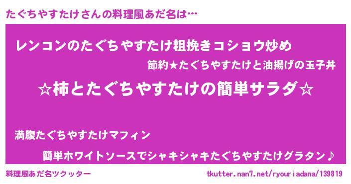 | 意味不明あだ名 | 『自称たぐちやすたけ』 |