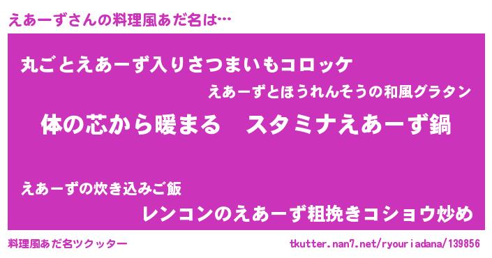 | 意味不明あだ名 | 『えあーずフォーエバー』『自称えあーず』 |