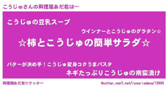 | 胡散臭い通販商品みたいなあだ名 | 『信頼と実績のサプリメント…その名も「こうじゅ」』 |