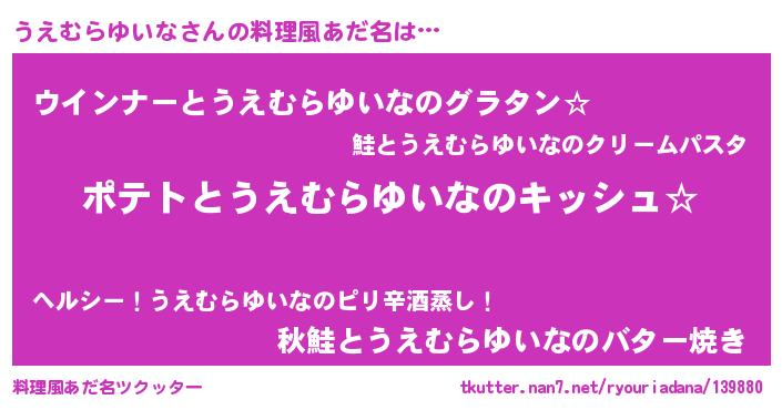 | ポケモン風あだ名 | 『ヒウエムラユイナ』『ウエムダネ』 |