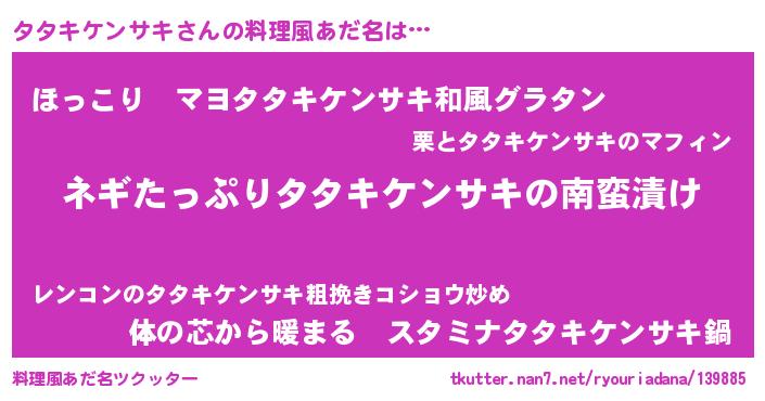 | 男性向けラノベタイトル風あだ名 | 『タタキケンサキアートオンライン』 |