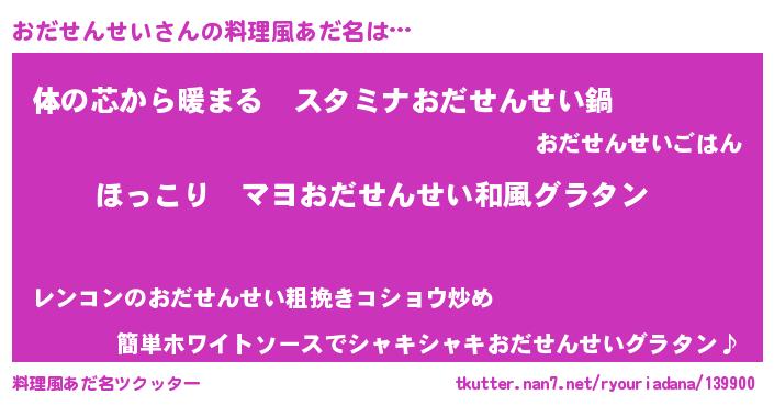 | 男性向けラノベタイトル風あだ名 | 『この素晴らしい世界におだせんせいを!』 |