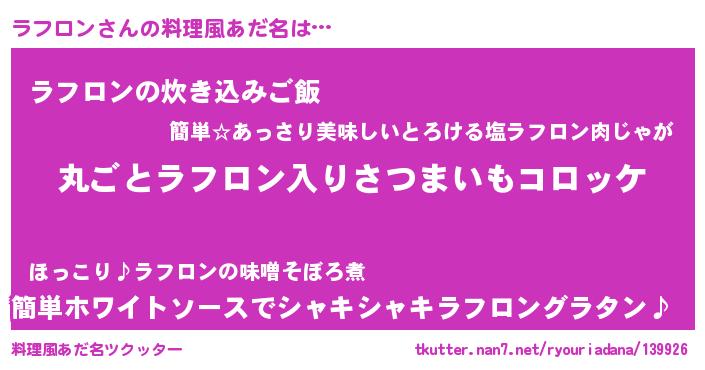 | ヘコむあだ名 | 『ラフお』『ラフロン(爆)』 |