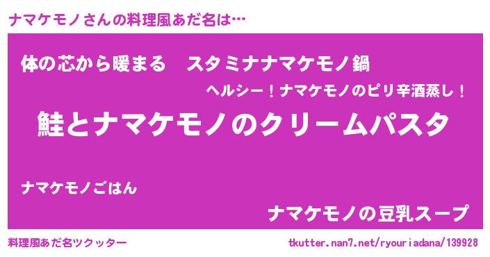| ヒーロー風カッコイイあだ名 | 『天空の使者ナマケモノ』『黄金騎士ナマ』 |