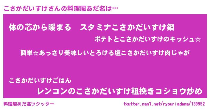 | ヘコむあだ名 | 『こさかだいすけ(笑)』『酢こんぶ』 |