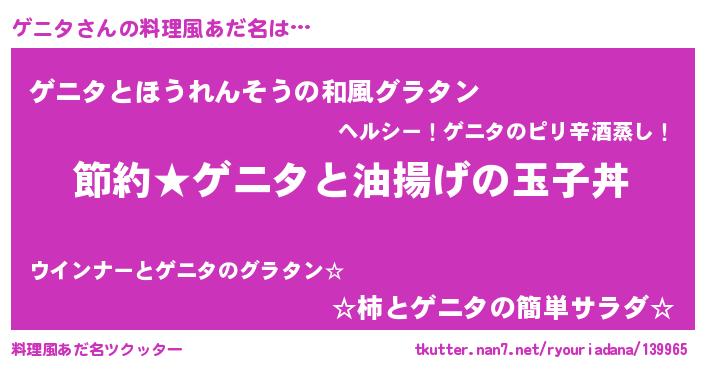 | ヒーロー風カッコイイあだ名 | 『スーパーゲニタ』『サイバー戦士ゲニタ』 |