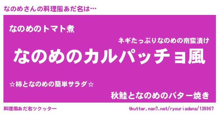| 女子向けラノベタイトル風あだ名 | 『なのめが死なない童話 林檎のなのめの診療簿』 |