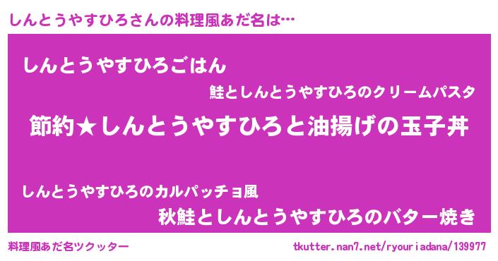 | ヒーロー風カッコイイあだ名 | 『スーパーシントウヤスヒロ』 |