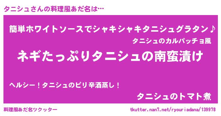 | 胡散臭い通販商品みたいなあだ名 | 『億万長者になれる水晶球…その名も「タニシュ」』 |